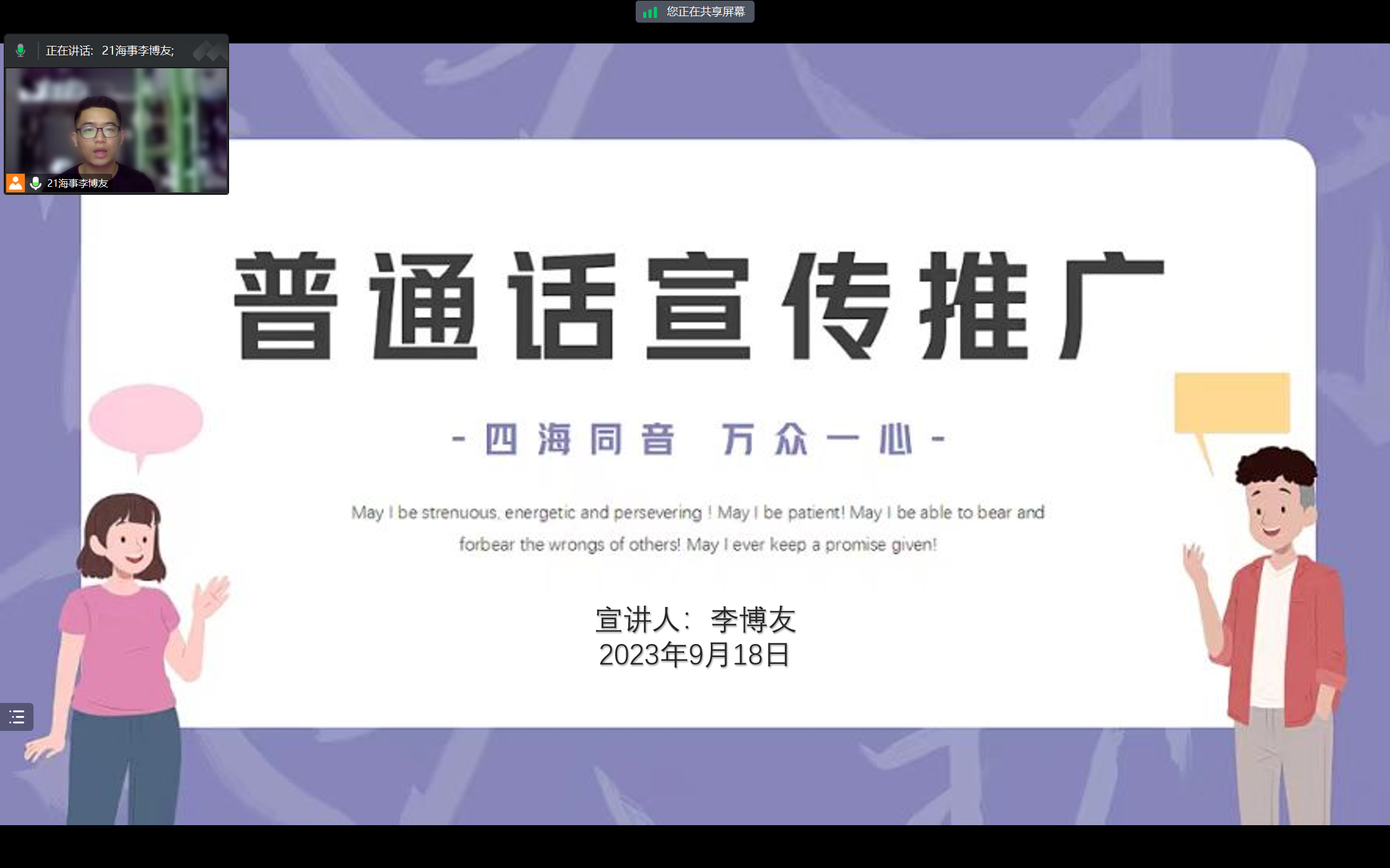 通过班级群、班会向全院同学传达推普周活动倡议,让员工明白推广普通话的重大意义,引导全院员工积极参与推普周各项校园活动。