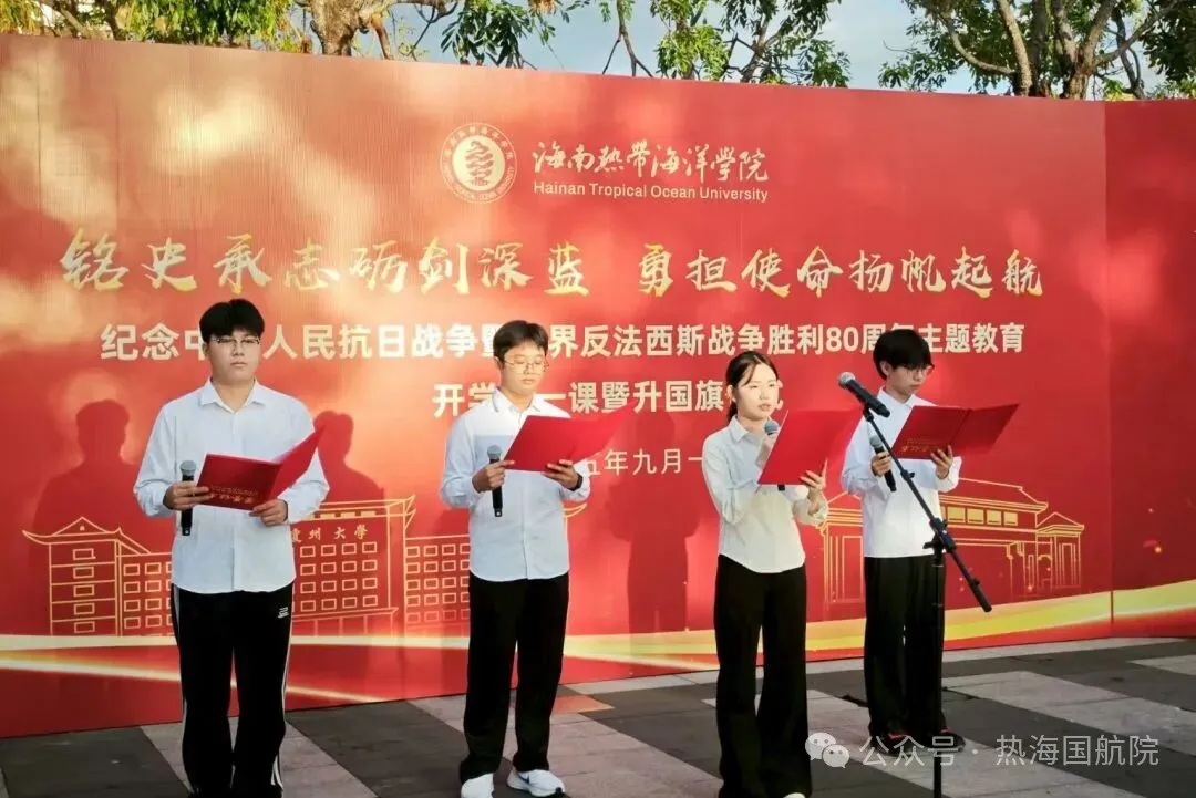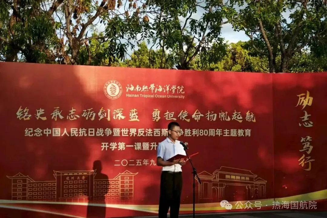 员工代表周林睿以《传承抗战精神,勇担青春使命,助力自贸港建设,扛起海洋大学青年的使命和责任担当》为题,号召同学们既要接过先辈们用生命与信念点燃的“抗战精神”火炬,让红色基因代代相传,更要扛起时代赋予的重任,在自贸港建设的浪潮中找准定位、奋勇争先。
