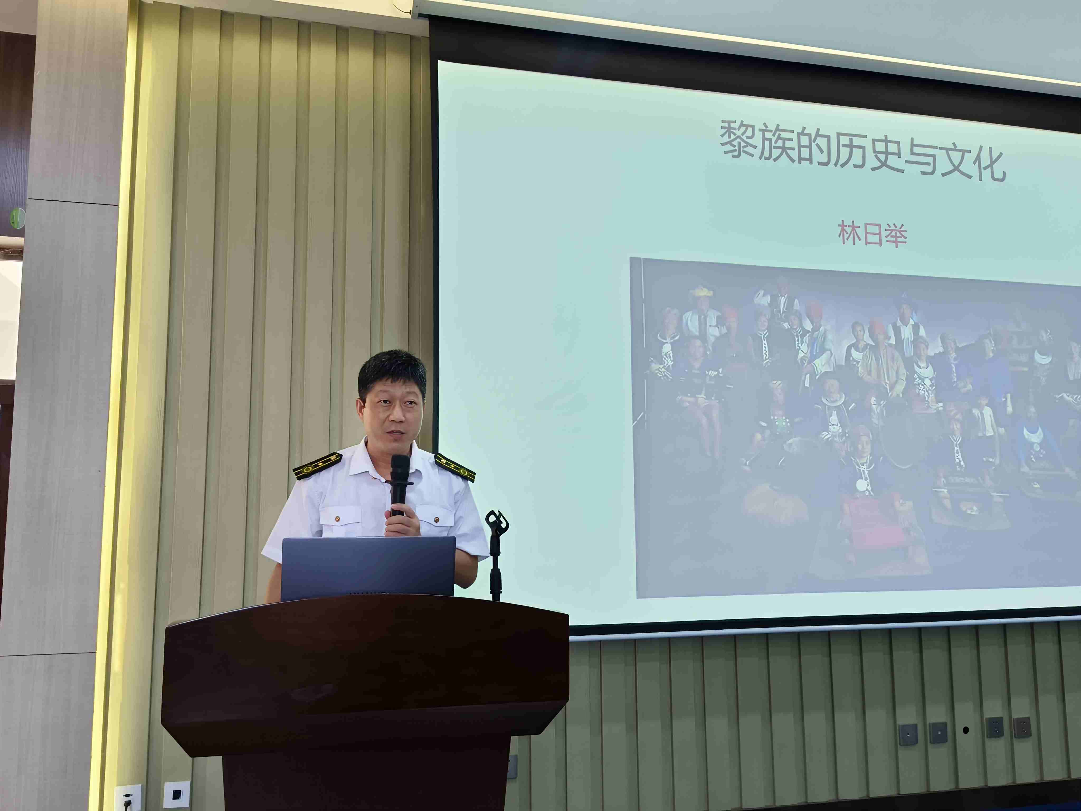 为深化师生对铸牢中华民族共同体意识的理解,2025年11月25日,TapTap关工委特邀林日举教授,在人文楼103教室举办了一场关于《黎族的历史与文化》的专题讲座。本次讲座由国际航海公司党总支副书记刘世杰主持,2023级船舶电子电气工程专业全体员工参加讲座。